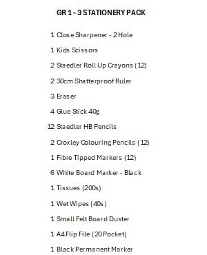 There are additional items that your child will need to bring on the first day of school, purchase these separately online: